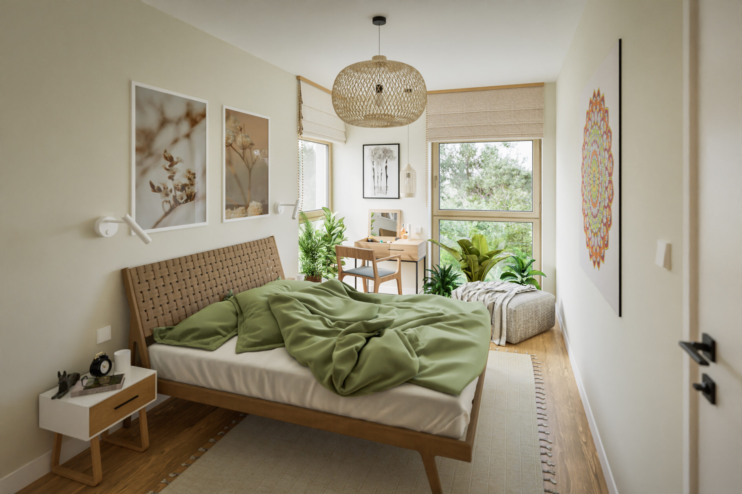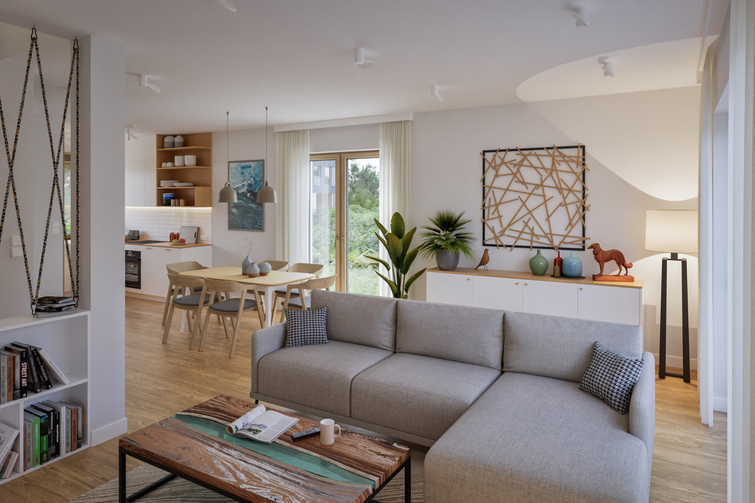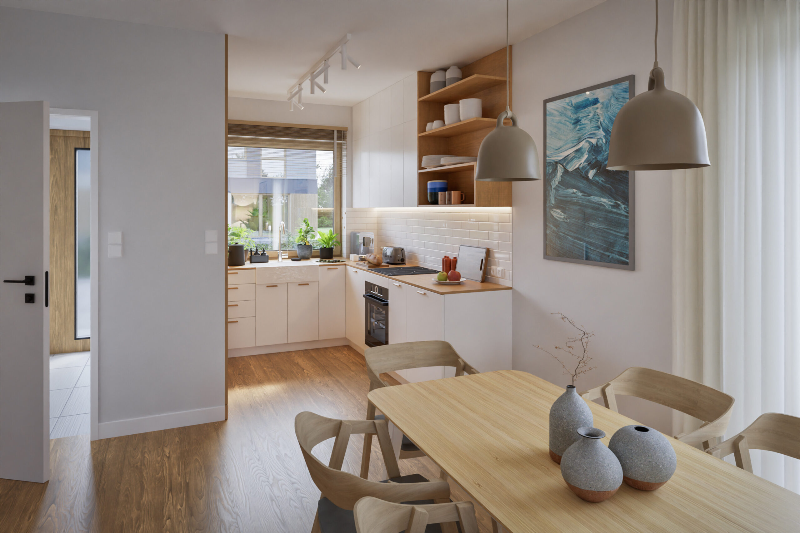 Cisza, spokój, harmonia w połączeniu z funkcjonalnością i nowoczesnością. Własny taras z widokiem