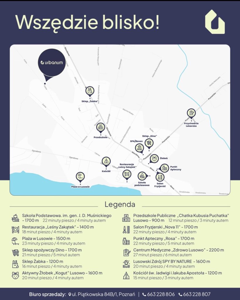 W zasięgu krótkiego spaceru lub kilku minut jazdy autem dostępny m.in.: paczkomat, przychodnia, apteka, kilka restauracji, salon fryzjerski i wiele innych lokalizacji.